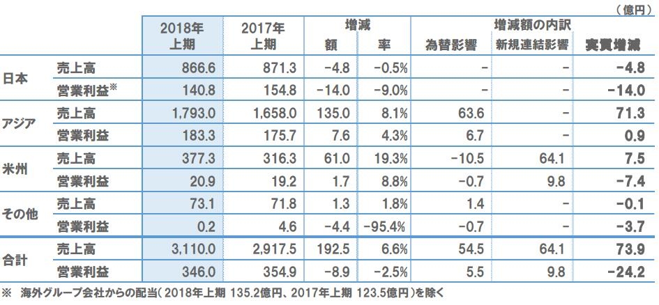 因此,亚洲地区的合并销售额为1792.99亿日元,同比增长8.1%;合并营业利润为183.31亿日元,同比增长4.3%,主要由于原材料价格上涨带来的影响,但是在销售管理费用得到了控制。