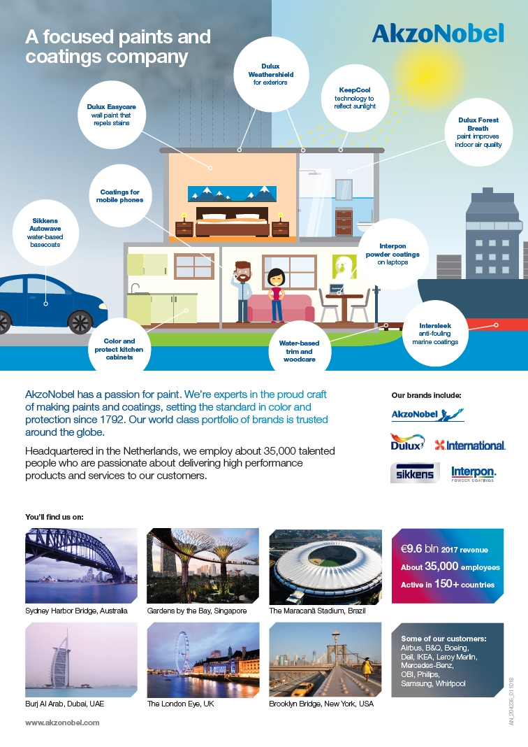 “现在我们已完成特种化学品业务的出售,我们打算按照承诺迅速有效地将绝大部分净收益归还给我们的股东。”阿克苏诺贝尔监事会主席Nils Andersen评论说,“阿克苏诺贝尔始终致力于通过实施创建一家专注、高效的油漆和涂料公司的战略,为股东和其他利益相关者实现下一阶段的价值创造。”(涂界)
