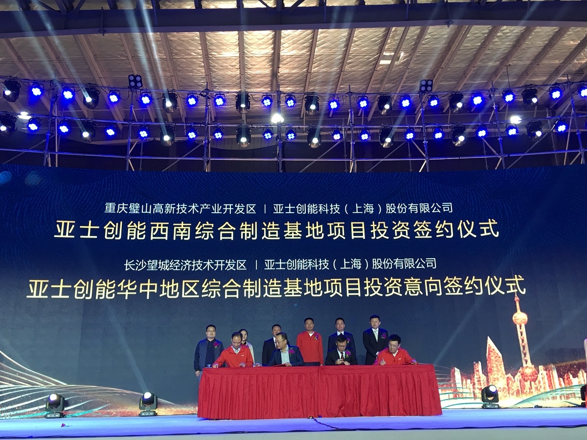 10月13日,亚士20周年庆典仪式在安徽滁州盛大举行。期间,亚士创能分别与望城经济技术开发区管理委员会、璧山高新技术产业开发区管理委员会签署了项目投资框架协议,计划在长沙市望城经济技术开发区投资建设(华中地区)建筑节能保温与装饰材料综合性生产基地,计划在重庆市璧山高新技术产业开发区投资建设亚士创能西南综合制造基地及西南区域总部。