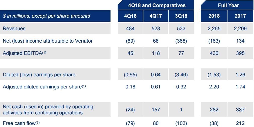 2月20日,Venator公布2018年度全年财务业绩。全年实现销售额为22.65亿美元,同比增长2.47%。亏损1.63亿美元,上年度同期为1.34亿美元;调整后EBITDA为4.36亿美元,同比增长9.4%。每股摊薄亏损1.53美元,调整后每股摊薄收益2.20美元。