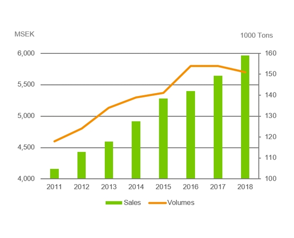 涂界记者4月13日获悉,贝格集团(Beckers Group)2018年实现销售额约为59亿瑞典克朗(2017年:56.4亿瑞典克朗),约合6.577亿美元(约合人民币45.07亿元),同比增长4.4%。2018年销量有所下降,实现销量为15万吨左右。(汇率:1瑞典克朗=0.76391人民币)