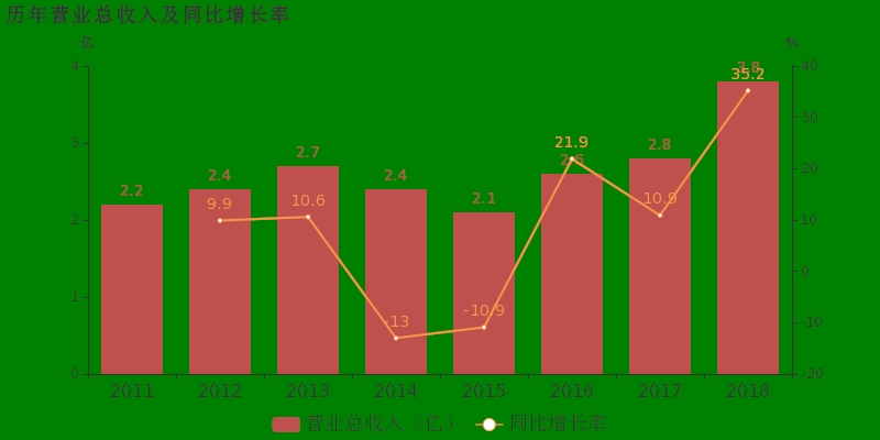 飞鹿股份2011-2018年历年营业收入及增长率情况