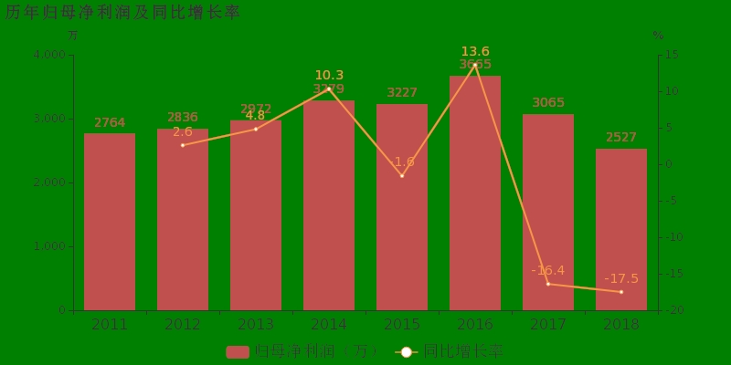 飞鹿股份2011-2018年历年净利润及增长率情况