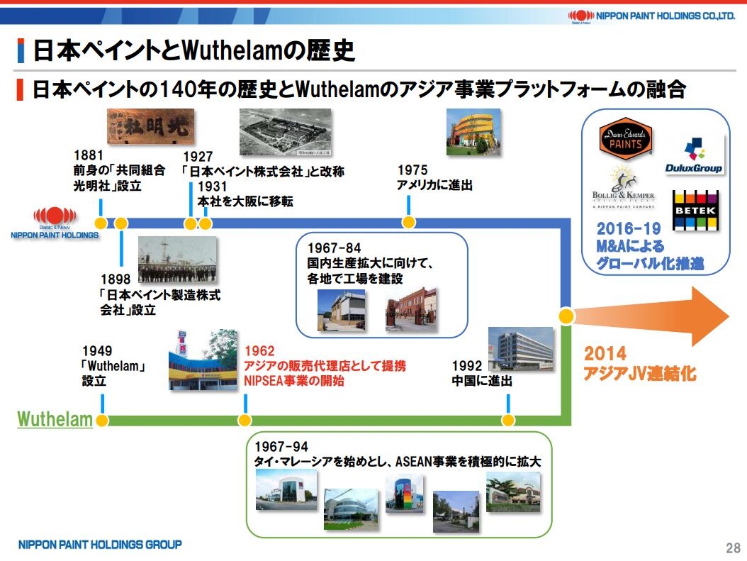 根据说明会资料显示,立邦涂料前身为“Komyosha”,始建于1881年;1898年,立邦涂料制造有限公司(Nippon Paint Manufacturing Co., Ltd.)成立。1927年,更名为“立邦涂料有限公司(Nippon Paint Co., Ltd.)”。1931年,立邦涂料总部迁至大阪。