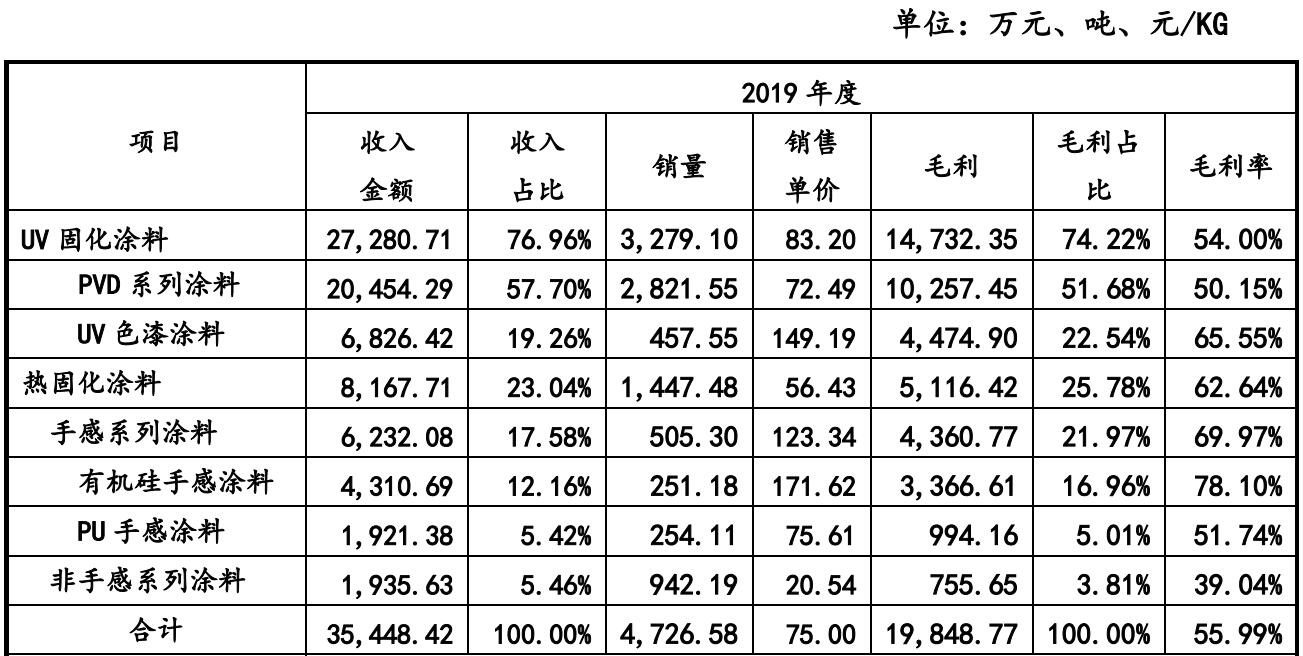 松井新材成立于2006年9月,主要从事涂料的研发、生产、销售和服务,拥有电子产品UV涂料、汽车零部件涂料等系列三百余个产品,广泛应用于手机、笔记本电脑、数码相机、汽车零部件、穿戴式产品等领域。目前,松井新材成为UV涂料(紫外光固化涂料)领域的细分龙头。(涂界)