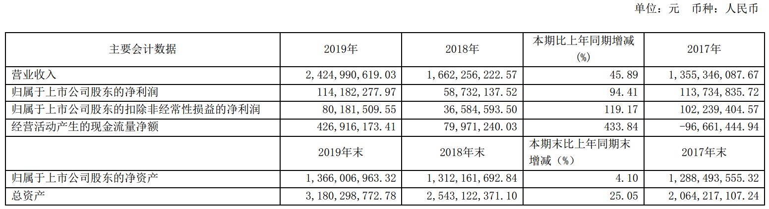 年报显示,经营活动产生的现金流量净额为4.269亿元,同比增长433.84%,主要系销售商品收到的现金及付款方式中应付票据的比例增加。公司2019年底应收账款8.323亿元,同比增长28.44%,主要原因是销量增长。