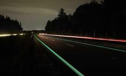 安装在“智能公路”上的“发光线(Glowing Lines)”能够在白天吸收太阳能,并在晚上提供长达8个小时的光照。