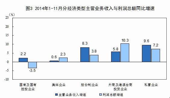 1-11月份,在规模以上工业企业中,国有及国有控股企业实现利润总额13096.7亿元,同比下降3.5%;集体企业实现利润总额469.6亿元,增长2.3%;股份制企业实现利润总额37179.1亿元,增长3.8%;外商及港澳台商投资企业实现利润总额13732.3亿元,增长10.3%;私营企业实现利润总额19065.1亿元,增长7.2%。
