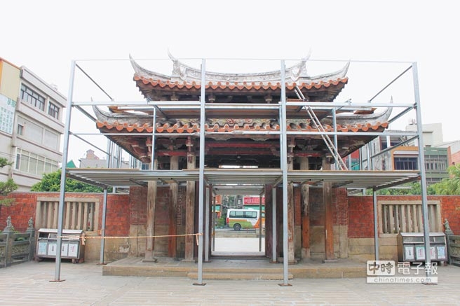 鹿港龍山寺即將上漆的「山門」,在文化人奔走抗議聲中,先告暫停