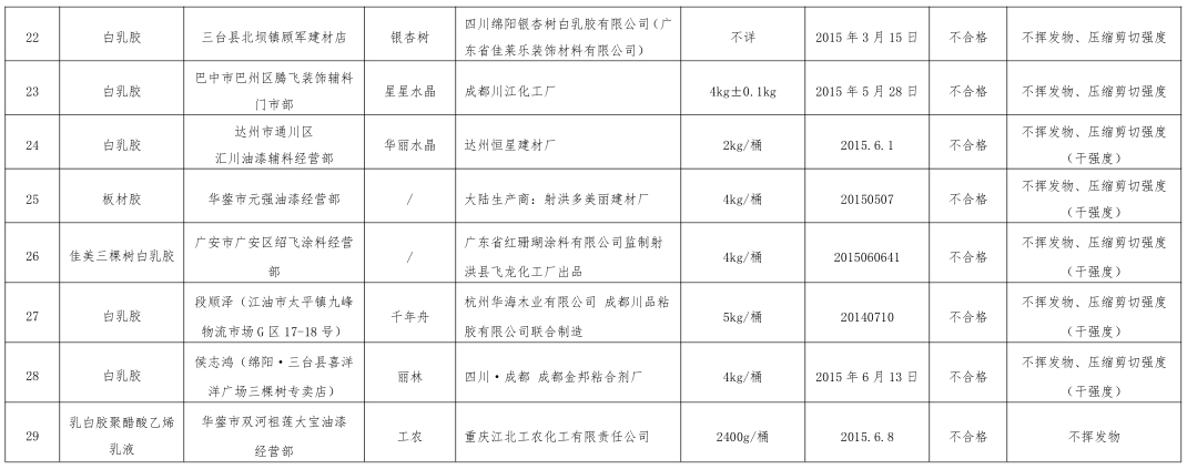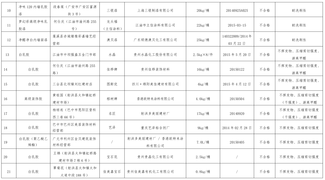 刚刚过去的2015年,涂料行业依然笼罩在质量阴影中。2016年1月19日,涂界记者从四川省工商行政管理局官网获悉,该局公布了涂料(乳胶漆、白乳胶)抽查检验情况,据其公布的资料显示,在抽检产品中,共有29个批次不合格,不合格项目主要集中在对比率、耐洗刷性、不挥发物、压缩剪切强度、游离甲醛等几个方面,其中耐刷洗性、不挥发物是最主要的不合格项。