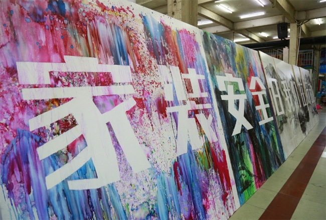 在8月17日的“家装安全日”活动现场,来自江西庐山西海艺术学院的数百名毕业生,通过水漆艺术板绘的形式,传播“家装安全”理念。