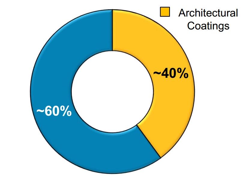 涂界记者注意到,在没有与威士伯(Valspar)合并之前,宣伟(Sherwin-Williams)2016年销售额为119亿美元,其中建筑涂料占比76%,约90.44亿美元;合并之后,合并销售额达158亿美元,其中建筑涂料占比66%,约104.28亿美元。