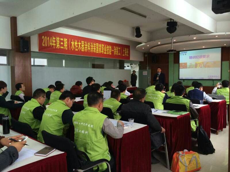 2014年11月25日上午,由国家化工生产力促进中心授权广东顺德家具研究开发院主办的“第三期中国水性木器涂料涂装国家职业技能”培训班在上海正式开班。据了解,君子兰涂料、展辰涂料、三棵树涂料、巴德士化工、陶氏化学(中国)、上海科罗纳精细化工、上海迪喆化工等涂料企业参加此次培训班。
