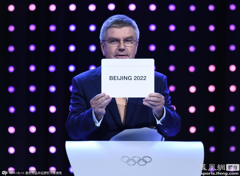 当地时间2015年7月31日,国际奥委会第128次全会在马来西亚吉隆坡举行。图为国际奥委会主席巴赫宣布北京成为2022年冬季奥运会举办城市