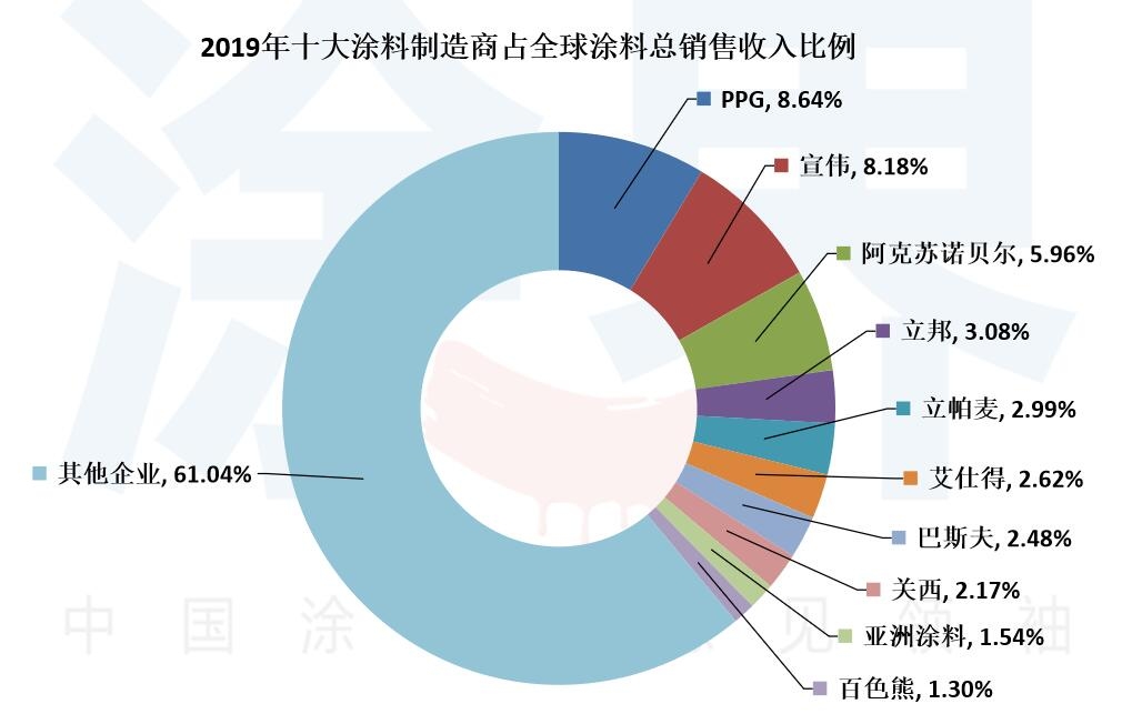2019年全球十大涂料制造商榜单揭晓,占世界份额为38.96%