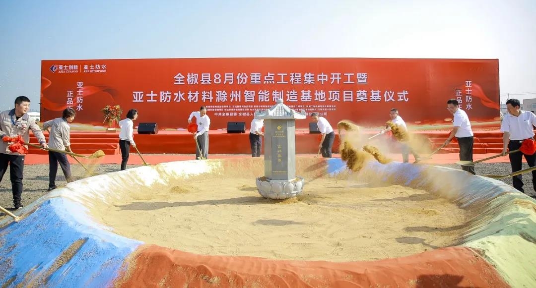 亚士防水科技(滁州)有限公司防水材料制造基地项目,总投资4亿元,总建筑面积约6.8平方米,形成年产改性沥青防水卷材6000万平方米、高分子防水卷材2000万平方米、防水砂浆5万吨、改性沥青2万吨的生产能力。预计2021年开工建设。